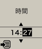 時間と同様に、右側の上下ボタンで分 を切替え、左下のボタンで決定します。
